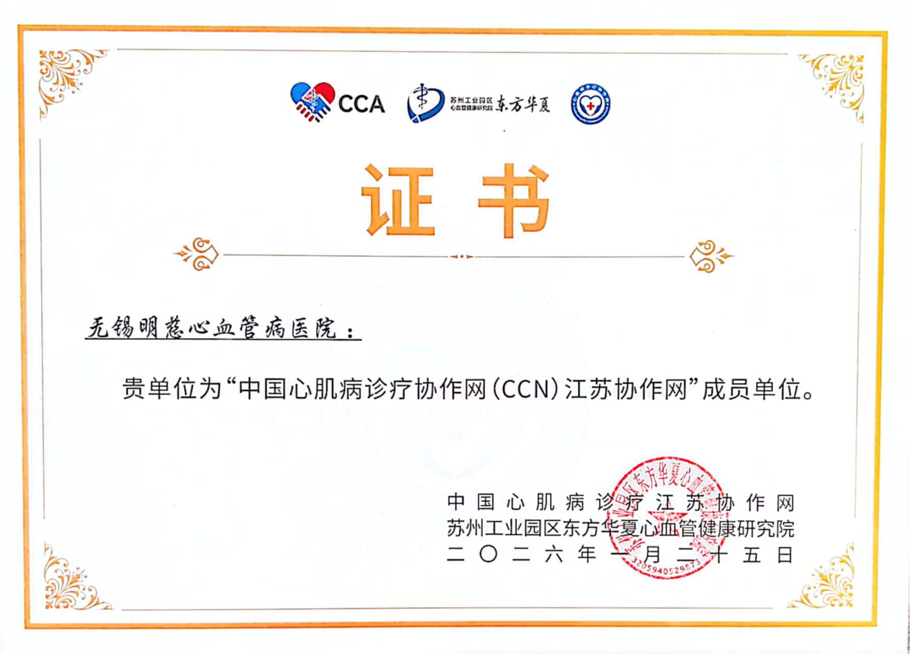 2026年1月25日,华夏中国心肌病诊疗江苏协作网与苏州工业园区东方华夏心血管健康研究院共同公布,无锡明慈心血管病医院凭借其在心肌病诊疗领域的专业能力与临床实
